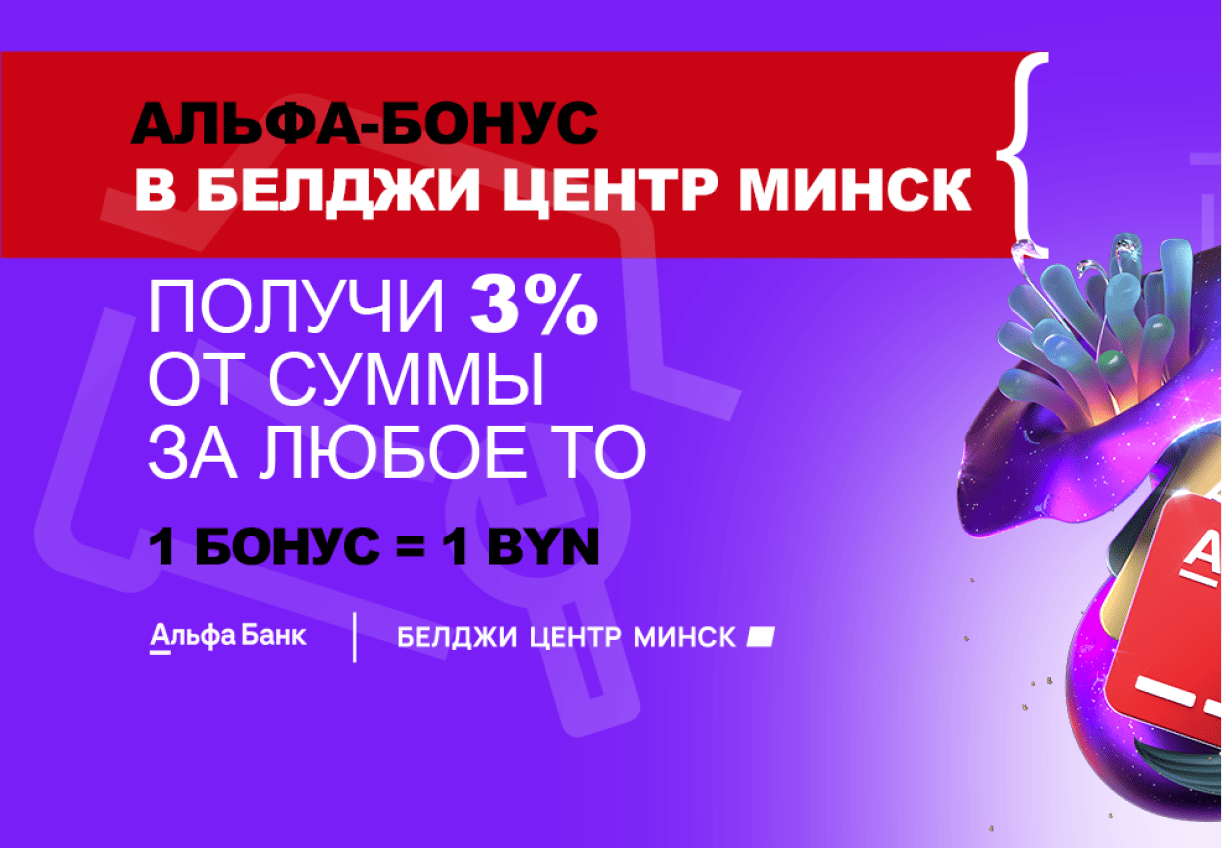 Обслуживать ваш BELGEE в Белджи Центр Минск не только удобно и надежно, но и выгодно! Все благодаря совместной программе с Альфа-Банком «Альфа-Бонус». Получайте 3% кэшбэка от стоимости планового технического обслуживания, а бонусы легко превращайте в реальные деньги!